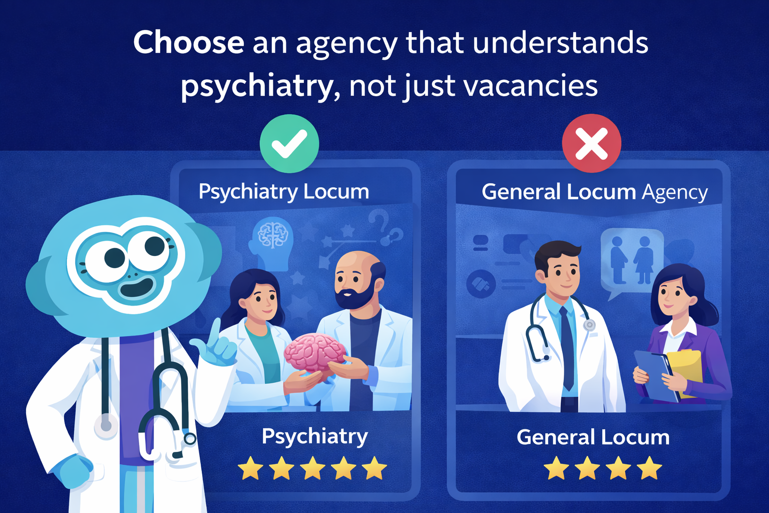 - The best psychiatry locum agency helps you find the right role, not just any role